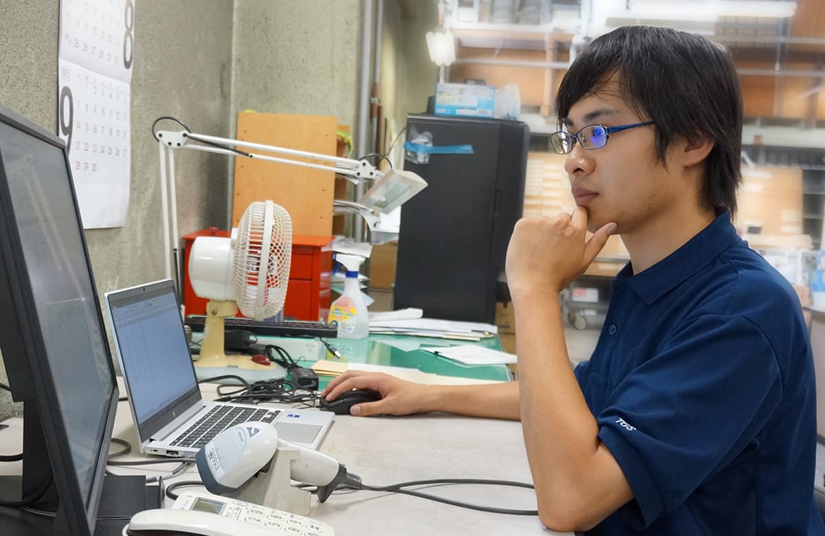お客様が注文された保守部品を納期どおりお届けできるよう、きめ細かな管理と丁寧な仕事を心がけています。お客様は自社設備の復旧、メンテナンスにこの部品を待っておられるので、サービス体制の重要な仕事のひとつと認識し、モチベーションを高く持って仕事をしています。